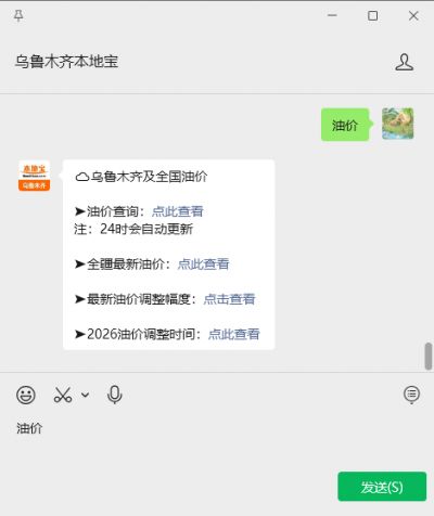 温馨提示:微信搜索公众号【乌鲁木齐本地宝】,关注后在对话框回复【油价】可获新疆/全国各大城市油价、涨幅趋势、油价调整时间及计算加油费用等内容